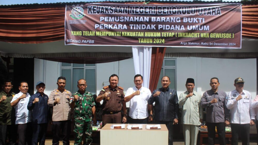 Bertempat di Halaman Kantor Kejaksaan Negeri Bengkulu Utara, Kepala Rumah Penyimpanan Benda Sitaan Negara Kelas II Arga Makmur, Jon Sahat Horas Saragih memerintahkan Plh. Kepala Subseksi Administrasi dan Pengelolaan, Iriyanto beserta Humas Rupbasan Arga Makmur, Ari Andela, menghadiri Kegiatan Pemusnahan Barang Bukti Tindak Pidana Umum di Kejaksaan Negeri Bengkulu Utara pada Rabu siang (04/12/2024).