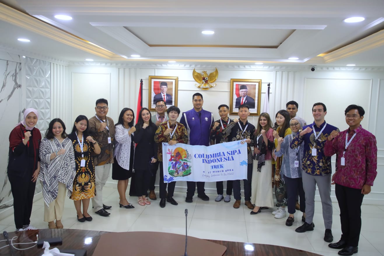 MANUVER – Menteri Pemuda dan Olahraga Republik Indonesia (Menpora RI) Dito Ariotedjo menerima audiensi peserta Columbia University Indonesia Trek 2024 di Lantai 10 Graha Kemenpora RI, Senayan, Rabu (13/3). Audiensi ini Membahas masa depan pemuda, kebijakan olahraga, serta pemberdayaan pemuda di Indonesia.