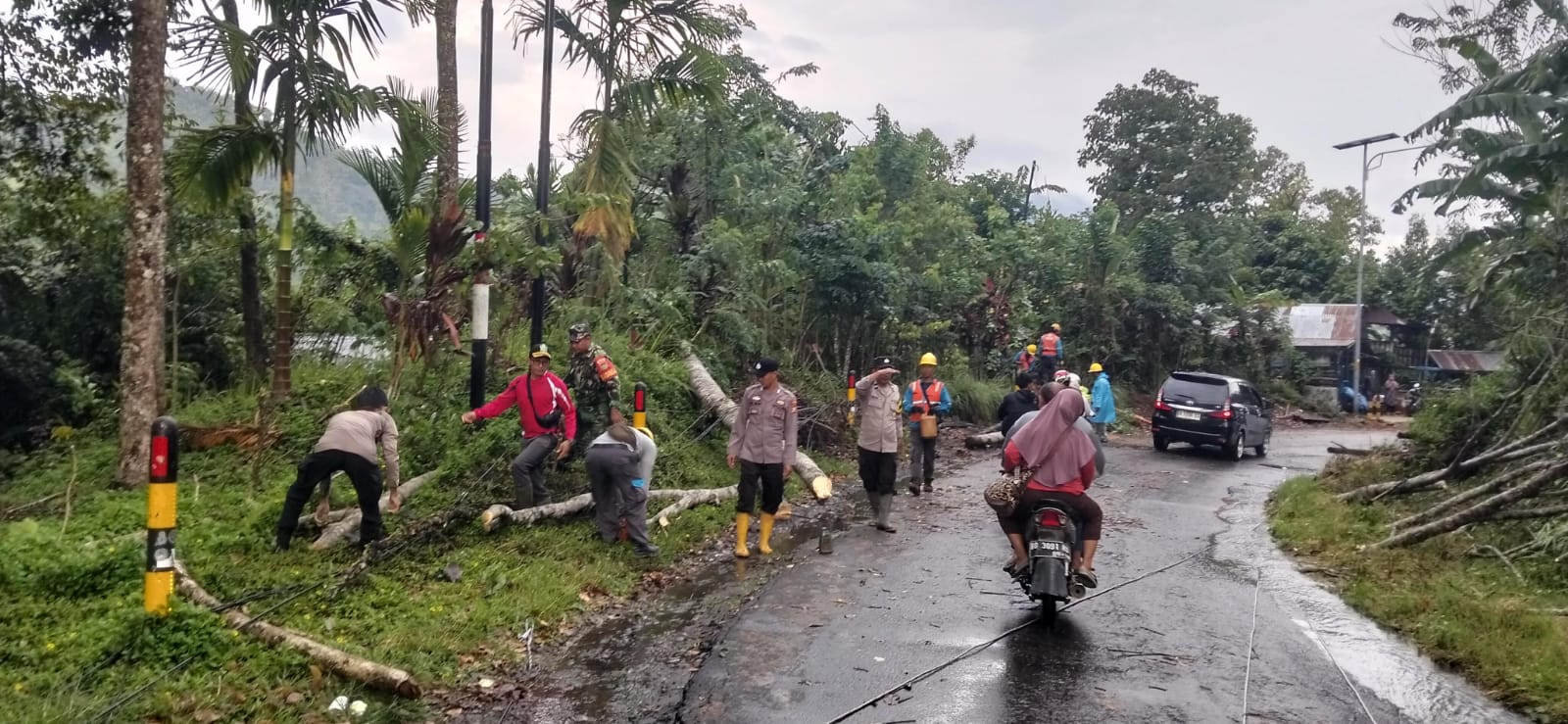Kapolsek Lebong Selatan, IPTU Nurmansyah, mengatakan, angin kencang disertai hujan badai menyebabkan pohon karet tumbang hingga menutup badan jalan utama Curup–Muara Aman.